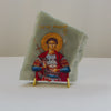 Saint Fanourios / Agios Fanourios icon is carefully handcrafted on Esmarelda Quartzite, covered with a clear hypoxy resin.